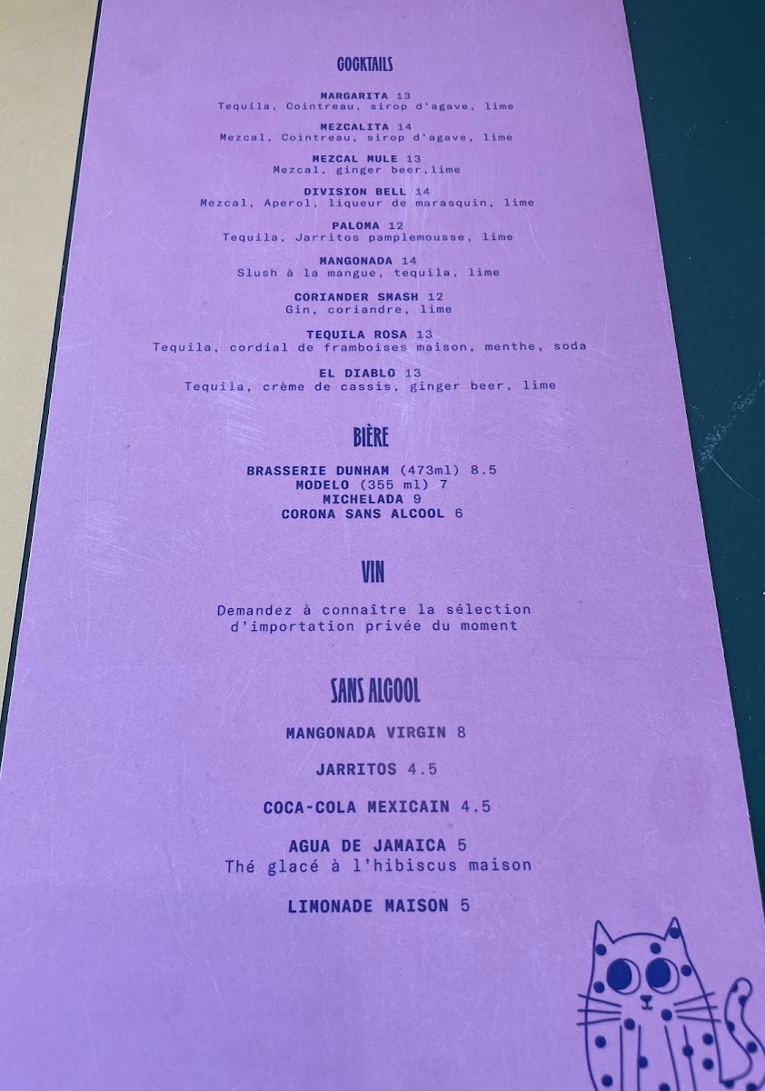 At Gato Sutton, located at 19 Principale Nord St #7, Sutton, Quebec, their menu offers a delightful selection of drinks and food, showcasing a blend of classic and innovative flavors. The BOIRE (Drinks) section features refreshing choices such as Craft Beer priced at $7.00 and a variety of Cocktails starting from $8.00, providing options for guests to enjoy a casual or more sophisticated drinking experience. For wine lovers, the house Red and White Wines are available by the glass for $9.00, perfect for pairing with your meal.